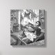 Canvas com esta cena repleta de ações em uma das Penny Dreadfuls de Londres da cadeira de barbeiro de Sweeney Todd em ação enquanto ela virava e cai uma vítima infeliz, aterrorizada e atordoada abaixo do chão para ser deixada ao compaixão não existente de Sweeney. As palavras anunciando o Compro Sweeney Todd Barber estão esculpidas na parede atrás do assassino.