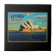 Este design de estilo vintage apresenta a Ópera de Sidney, na Austrália. Belo oceano azul e céu.