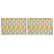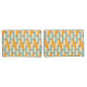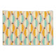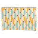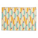 Symmetrical retro pattern with interlocking teal, yellow, and orange shapes on a beige background. Black star-like accents add contrast, creating a vintage feel.