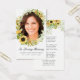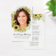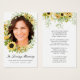Send this elegant custom floral prayer card to family and friends in remembrance of your loved one. This design features a photo on the front framed in faux gold with hand painted yellow sunflowers with greenery. Below in black script are the words "In Loving Memory" with a name and dates to personalize. The back of the card has a Hail Mary prayer which may be kept as is or customized accented by a gold cross with a sunflower. Designed by Susan Coffey.