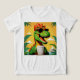 Legal T-Rex Dinossauro vestindo óculos escuros com uma xícara relaxante de café em um cenário tropical