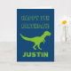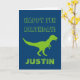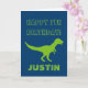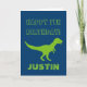 Cartão de saudação de aniversário personalizado do dinossauro T rex para crianças. Boa ideia de cartão de aniversário para meninos e meninas. Design verde pré-histórico do Tyrannosaurus rex com fundo de cor personalizável. Trex selvagem personalizado para crianças. Diversão para o jardim de infância, escola de gramática, crianças do ensino fundamental. Adicione seu próprio nome. Também disponível como cartão grande extra grande de tamanho excessivo. Divertido para 5 7 de 6 de 8.9.10.º aniversário etc. Adicione seu próprio número de idade. Cartões legal para os sobrinhos primeiro aniversario, filho, neto, amigo, irmão, etc.
