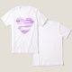 Embrace força e encorajamento com nossa Camiseta do Coração da Resiliência, projetada para inspirar e elevar através das tempestades da vida. Esta peça única apresenta um design em forma de coração cheio de frases empoderadoras como "I OVERSTAND" e "YOUR STORM IS QUASE OVER". Usando tons vibrantes de roxo, simboliza a compaixão, a esperança, e o espírito eterno a perseverar. Vista esta camiseta como um lembrete diário da sua força interior e como uma mensagem de solidariedade para aqueles que também precisam de um impulso positivo. É mais do que uma camiseta; é uma forma de encorajamento e um testemunho do poder da resiliência.