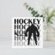 Um jogador negro de hóquei na silhueta e um texto que lê "Hockey" em T-shirts de hóquei, sacos de tote, cartões, adesivos, canecas, iPad e capas de iphone, keepsakes, posters e outros talentos e roupas de hóquei, perfeito para jogadores de hóquei ou fãs de hóquei!