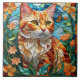 tabby cat art, stained glass cat, quilted cat design, abstract feline, colorful patchwork, modern cat artwork, textile-inspired art, whimsical cat print, artistic cat decor, cozy colorful design
