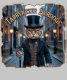 Striding forward with a menacing expression on his face is the tabby cat version of Ebenezer Scrooge from A Christmas Carol by Charles Dickens. In the background is a cobblestone road in 1840s London, where the classic story comes alive. This item is ideal for those who love funny animals, funny animal pictures, humor, comedy, comical animals, tabby cats, mean cats, funny cats, Christmas, the holiday season, Christmas classics, Christmas entertainment, Christmas gifts, funny jokes, funny memes, fantasy art, creative art, imaginative art, offbeat humor, puns, parody and spoofs. This is one of a series of Famous Animals on the Zazzle Funny Masterpieces Store, spelled FunnyMasterpieces.