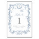 Tabelas de Casamento Toile Azul Número Cartão Chin