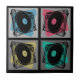 Houve um dia em que os álbuns de vinil eram a única forma de ouvir a sua música, um lado de cada vez. Os registros viráveis e vinílicos são fazer ressurgimento hoje em dia. Quatro quadrados, em tons médios e leves de cinza, fornecem o fundo para o design de Turntables de Arte Retro-Pop. Em cada quadrado há um gráfico preto girável, em perspectiva exagerada. Os fundos coloridos dos quadros giratórios estão em vermelho, azul, amarelo e verde, dando a este gravador estéreo design a retro look. O Retro Pop Art Turntables é um design para qualquer amante de música e vinil! Visite o compro ElectricPopSpot e navegue por todos os nossos incríveis designs de pop art! ElectricPopSpot - Transformando a cultura de Pop em Pop!