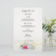 Personalize o elegante Menu de Casamento da Taça Tea e Roses Rosa com os detalhes da refeição que você servirá no almoço de chá de panela da sua festa de chá, poste o brunch de casamento ou o janto de recepção de casamentos, adicionando a salada ou o primeiro curso, a entrada ou o segundo curso e a sobremesa ou o terceiro curso. Personalize-o com os nomes da noiva e noiva, local de evento e data. Este típico menu de casamento de chá alto apresenta uma fotografia floral pintada digitalmente de uma xícara de chá florida e um pires e flores rosa cor-de-rosa com cebola branca.