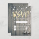 Modelos de Cartão de Resposta de RSVP de Casamento - Letra Elegante, Taças de Champanhe Vintage e Luzes de Corda em Fundo de Madeira Rústica.