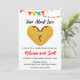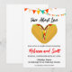 Celebre o seu amor pelos tacos e o seu casal de casado com este divertido e moderno convite à aquarela. Perfeito para um chá casual e festivo, este design apresenta uma ilustração lúdica de taco com um recheio em forma de coração, rodeado por vibrantes salpicos de aquarela. Personalize o convite com seus nomes de casal, data do chá, hora e local.