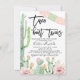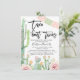 Pastel colored fiesta temed taco sobre um convite a um chá de fraldas para bebês com cacto florescente e faixa mexicana em rosa e menta. Ideal para alguém que procura um taco gêmeo de uma menina ou um convite a chá de fraldas temático fiesta e que não se esqueça de marcar a cena de um chá de fraldas temático fiesta.