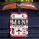 Esta mala vermelha e branca de Manchester certamente o ajudará a localizar suas bolsas no carrossel. Esta marca de código de aeroporto MAN inclui igualmente informações aeroportuárias autênticas.