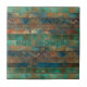 Traga algum sotaque, ou frescura para o seu Loft, banheiro industrial, sala de chá, sala de lama, cozinha, padaria, restaurante, comitiva, albergue de arte ou hotel, casa de hóspedes com esta bela, teal, marrom, azul, cobre falso, inspiração patina, texto curto personalizado, azulejo de cerâmica artística, projetada pelo PiccoGrande.