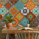 Bring timeless Mediterranean beauty to your home with this geometric tile design. Inspired by Moroccan and vintage European patterns, this elegant artwork adds color and charm to kitchens, bathrooms, and decorative wall tiles. Perfect for custom ceramic tiles, coasters, and stylish home décor accents. Part of a coordinated collection of 18 mix-and-match tile designs in orange, blue, brown, black, and white.