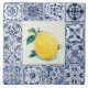 lemon farm casa ceramic tile,mediterranean green yellow lemons fruit,traditional portuguese spanish nature,,italian farmhouse home,decorative folk rustic farming villa,blue and white vintage art, "talavera square mexican tile", "porcelain patterned delft pattern", "arty border perimeter frame", "limone amalfi italy citrus"