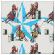 Tambores running e pólo da vaqueira que dobram-se neste tecido ocidental do tema do rodeio.