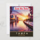 Convite de casamento save the date Tampa, cartão postal de viagem. Pôr do sol sobre a orla da cidade.