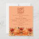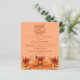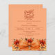 Uma cor de fundo da tangerina atômica. Decorou um grande arco laranja e caiu flores. Personalize e adicione os detalhes da festa. Script de texto: Grateful e abençoado. 1 folha = 1 convite impresso de borda a borda.