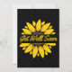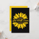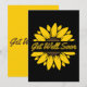 Este convite apresenta um girassol dourado e marrom exibindo a frase "Tão Logo Fique Bem" no centro, além de letras marrons/contorno dourado e fonte de impressão de cauda amarela com um estilo tipográfico neste tema de girassol "Tão Logo Fique Bem". Impresso em um papel clássico e completo com 17,5 pt de espessura e acabamento fosco não revestido com textura de casca de ovo feito e impresso nos EUA com "Tão Logo Fique Bem" impresso no verso.