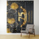 Tapeçaria banner de fundo de aniversário dourado e preto, Contate-me para outra IDADE ou para personalização, Rosas Cor-de-rosa ©