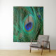 Tapeçaria azul indiana da parede da pena do pavão