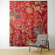 Folhagem em larga escala, e flores em cores ricas de bronzeado, vermelho e azul contra fundo vermelho. Inspirado pelos têxteis históricos. Evoca um interior quente, decadente e boêmico.