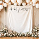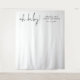 Este pano de fundo de fotos do chá de fraldas apresenta uma fonte escura escrita à mão e um design moderno minimalista com a frase "oh baby" e uma combinação simples de cores preto e branco. Edite facilmente as cores para atender às necessidades do seu evento e adicione seu nome e data para um toque pessoal.