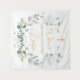 Tapeçaria para Batizado/Cristã. Este design apresenta uma ilustração de ramalhetes de Verdura de Eucalipto em estilo aquarela. Acima das folhas, confetes adornam a parte superior da tapeçaria (suas imagens podem ser removidas). No topo da coroa há uma imagem de uma Cruz.