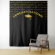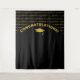 Ttapeçaria moderna de Graduação em preto e ouro, projetada para celebração de fotos para formandos. Há um pequeno gráfico superior de graduação na mesma cor do roteiro de coordenação em segundo plano. O texto curvo que diz que os PARABÉNS são personalizáveis, para que você possa alterar o texto, por exemplo, o seu nome ou criar os seus próprios itens textMatching disponíveis. Escolha entre uma ampla seleção de designs de Formando em cartas, convites, roupas, decoração doméstica e presentes, projetados por Designs Bereanos.