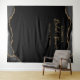 Esta elegante tapeçaria para foto pousio de chuveiro de noiva apresenta uma borda de ágata preta e dourada na parte superior e inferior em um fundo preto. Personalize o texto dourado com as palavras "Chuveiro de Noiva" (ou evento de sua escolha) em escrita à mão, juntamente com o nome da noiva e a data em fonte copperplate.