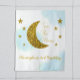 Dois para a lua! Aniversário de 2 anos com lua e estrelas douradas em fundo de aquarela azul