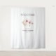Receba seus convidados com estilo com esta tapeçaria de boas-vindas de casamento floral elegante. Com flores em tons de rosa e burgundy em aquarela suave, tipografia minimalista e texto personalizado com nomes e data, este belo cenário adiciona um toque romântico e refinado à entrada do seu casamento ou área de fotos. Perfeito para recepções, chá de noiva ou festas de noivado.