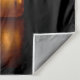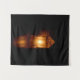 O brilho âmbar quente da luz de uma lâmpada de cristal em uma sala escura.