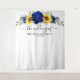 Pano de fundo fotográfico de casamento rústico moderno e elegante apresenta girassol amarelo brilhante, peônias azuis reais, bebê-respiração, moldura floral de gipsófila / coroa com folhas de eucalipto. Encontre mais designs e variações correspondentes na minha loja "blissweddingpaperie". E sinta-se à vontade para entrar em contato comigo para personalização adicional ou itens correspondentes.