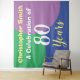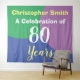 Celebre um aniversário com uma tapeçaria personalizada de fundo com o nome do destinatário e número de anos. Fundo de festa para uma pessoa de 80 anos.