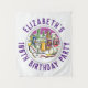Para celebrar um aniversário especial. Projetado para alguém que tem 100 anos de idade. Celebração dos 100 anos. Ilustração de bebidas de festa de aniversário é o centro das atenções. Adicione o nome e a idade. Tapeçaria pendurada na parede para festa de aniversário.