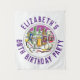 Para celebrar um aniversário especial. Concebido para alguém que tem 80 anos de idade. Celebração dos 80 anos. Ilustração de bebidas de festa de aniversário é o centro das atenções. Adicione o nome e a idade. Tapeçaria de parede para festa de 80 anos.