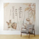 Tapeçaria boêmio de chã de bebê com fundo marrom claro, um ursinho de bebê menino em aquarela vintage, balões, grama das pampas rústica e flores, além de um modelo de texto moderno fácil de personalizar.