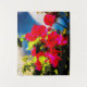 Esta tapeçaria de parede irá adicionar um pouco de cor à sua vida. A obra de arte é uma fotografia abstrata original de ZoeSPEAK de um arbusto de bougainvillea à luz da tarde. As flores no arbusto são na verdade minúsculas e brancas. As partes coloridas que as rodeiam são chamadas de brácteas. Nesta foto, as brácteas são de um rosa quente e profundo, quase brilhante. Folhas verdes e uma sombra azul fresca numa parede de estuque amarelo pálido completam esta imagem colorida.