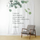Fundo de casamento com verso personalizável e decoração de eucalipto aquarela.