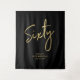Esta tapeçaria moderna é perfeita para uma festa de 60 anos chic com preto e dourado. Seus convidados vão adorar tirar uma foto com este fundo de cena sofisticado e lembrar do seu dia especial. O design apresenta um "Sessenta" em letra cursiva dourada com texto personalizado. Você pode personalizar o nome, evento e data na parte inferior da tapeçaria. Obrigado!