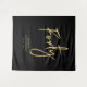 Esta tapeçaria moderna é perfeita para uma festa de aniversário de 40 anos chic com preto e dourado. Seus convidados vão adorar tirar uma foto com este fundo de cena sofisticado e lembrar do seu dia especial. O design apresenta um "Quarenta" em letra cursiva dourada com texto personalizado. Você pode personalizar o nome, evento e data na parte inferior da tapeçaria. Obrigado!