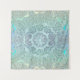 Tapeçaria desvanecida da parede da mandala da lavanda das cinzas azuis.  Uma mandala indiana oriental clássica em máscaras de contraste do verde azul e da lavanda do aqua pálido e roxo.  As mandalas são uma tradição artística simétrica favorita nas culturas indianas e celtas, e são usadas na meditação para ajudar a focalizar a mente.