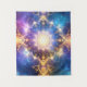 Transforme o seu espaço com esta tapeçaria de abstrato mesmerização que apresenta um lótus radiante ou mandala no seu núcleo. O azul etéreo e a luz dourada fluem sobre um fundo escuro profundo, o design simétrico evoca um sentido de energia espiritual, harmonia e tranquilidade. Perfeito para criar um ponto focal em sua sala, quarto, espaço de meditação ou estúdio de yoga. Este impressionante pedaço de trabalho de arte digital adiciona um toque de beleza cósmica e energia mística a qualquer sala. As cores vibrantes e os intrincados padrões brilhantes inspiram tranquilidade e transcendência.