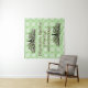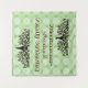 Duas árvores negras, em castanho, assentam sobre um fundo de círculos sobrepostos. O plano de fundo é verde médio com círculos em duas tonalidades mais claras da cor mais escura escolhida. Entre as duas árvores está o texto que proclama o nome do evento. Personalize com o nome da família e o título do evento abaixo.