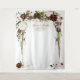 Esta tapeçaria floral rústica para casamento é o pano de fundo perfeito para as fotos do seu casamento. O design boêmio apresenta rosas cor de rosa e verde em aquarela pintadas à mão decorando um dossel de bambu. Personalize com os nomes da noiva e do noivo e a data do casamento em escrita borgonha. Desenhado por Susan Coffey.