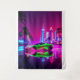 Carro esportivo fluorescente inspirado nos anos 80, irradiando tons brilhantes de verde neon, rosa quente e azul elétrico. O carro apresenta linhas nítidas, angulares e um perfil aerodinâmico baixo, evocando uma estética retro-futurista. Ele acelera uma estrada elegante e úmida refletindo seu brilho vibrante. Ao redor da cena estão palmeiras, signos brilhantes, e arranha-céus iluminados com luzes de néon, todos colocados sob um céu noturno gradiente mudando de roxo profundo para laranja. Toda a atmosfera reflete a vibração ousada e sintética dos anos 80, misturando nostalgia com energia futurista.