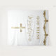 Esta faixa de celebração de batismo religioso apresenta uma cruz com a inscrição Deus Abençoe que pode ser personalizada com o primeiro nome do bebê.