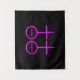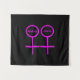 Esta tapeçaria incrível é projetada para lésbicas. Ela apresenta dois símbolos femininos cor-de-rosa lado a lado. O fundo é preto e há texto cor-de-rosa personalizável dentro de cada um dos símbolos para colocar nomes.